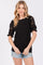 Black Open Knit Short Puff Sleeve Sweater Top