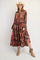 Black Printed Button Detail Tiered Midi Dress