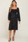 A printed maternity dress featuring long sleeves, a square neckline and a smocked top.