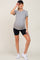 A pair of rib knit maternity biker shorts with an elastic belly band.
