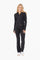 A pair of ribbed pants with a foldover waist and flared pant legs.