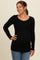 Embrace comfort and style with our Black Ribbed Knit Long Sleeve Lettuce Hem Maternity Top. Designed to gently hug your growing bump, this soft, stretchy ribbed knit fabric offers an ultra-flattering fit throughout your pregnancy. The delicate lettuce hem adds a trendy, feminine touch, while the scoop neckline provides a flattering and versatile look. Perfect for layering or wearing on its own, this top pairs effortlessly with jeans or leggings for casual, everyday wear. Stay cozy and chic from bump to baby with this essential maternity wardrobe staple. Available in versatile black for easy mixing and matching.