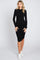 Black Ribbed Mock Neck Ruched Long Sleeve Dress