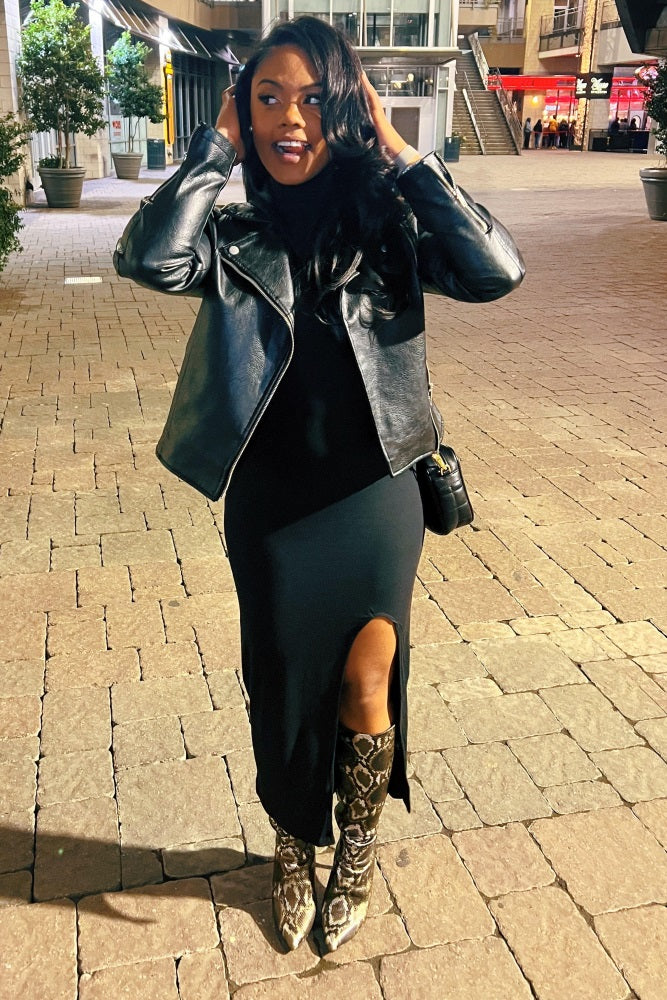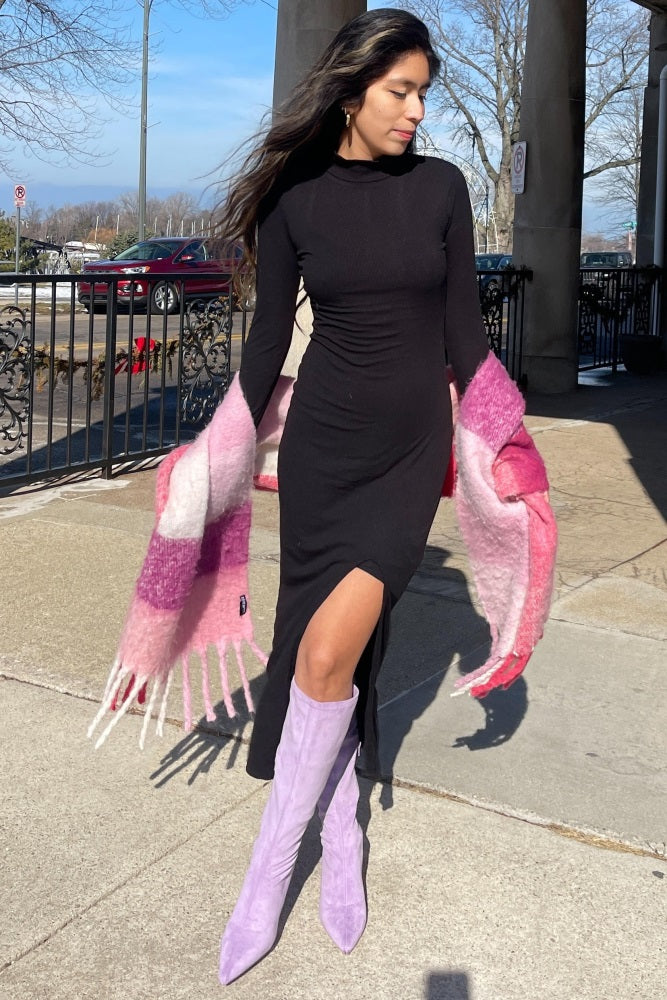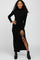 Black Ribbed Mock Neck Side Slit Maxi Dress