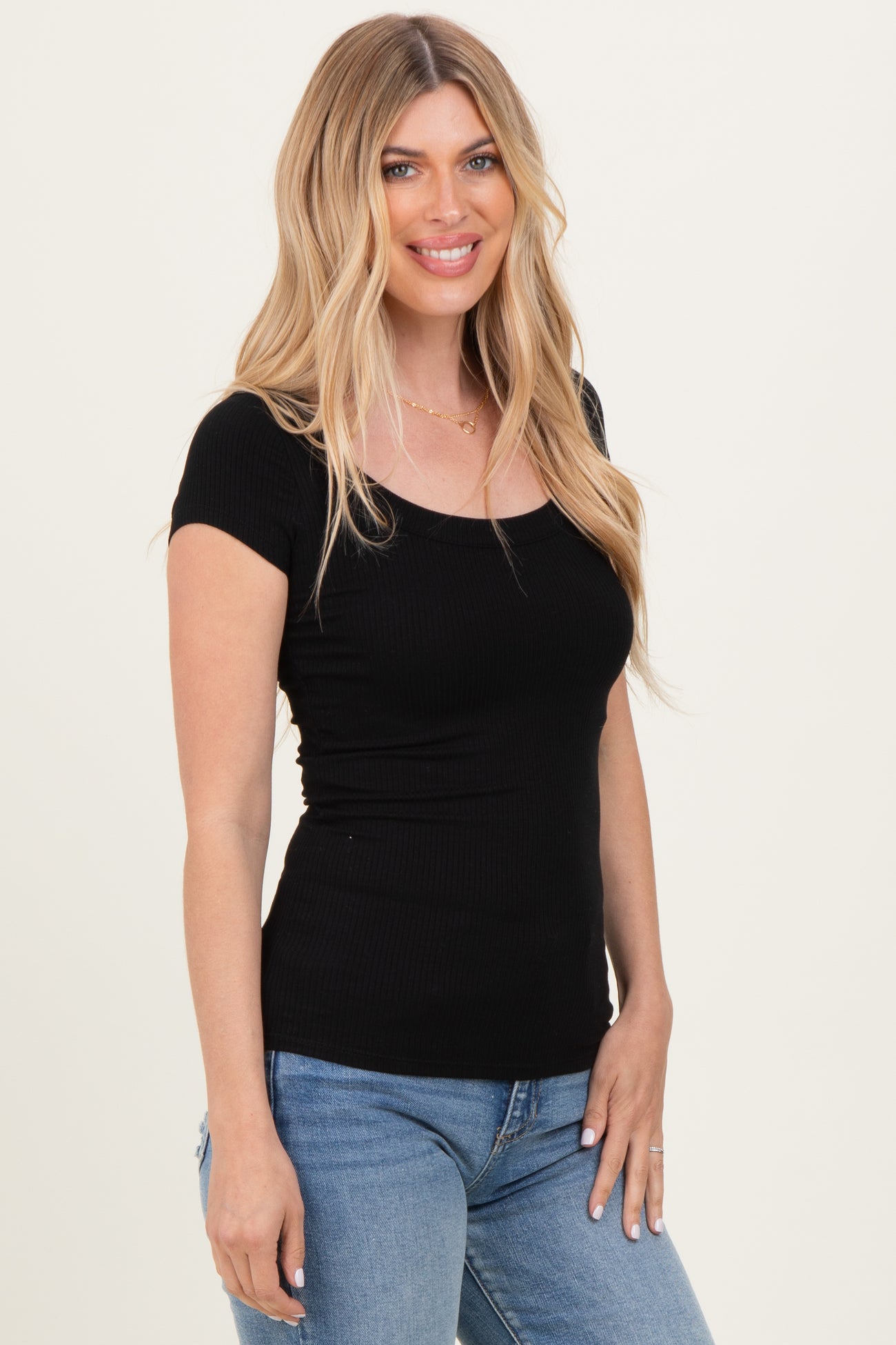 Elevate your everyday wardrobe with this chic ribbed top featuring a rounded square neckline that adds a modern touch to a classic silhouette. Crafted from soft, stretchy fabric, it offers a flattering fit that contours to your body, ensuring both comfort and style. The short sleeves make it perfect for layering or wearing on its own during warmer days. Pair it effortlessly with jeans or skirts for a casual yet polished look. Versatile and timeless, this top is a must-have staple that seamlessly transitions from day to night. Easy to style, easy to love!