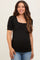 Black Ribbed Ruched Square Neck Puff Sleeve Maternity Top