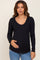 A solid rib knit maternity top featuring a scoop neckline and long sleeves.