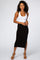 Details A ribbed knit skirt featuring a side slit and an elastic waistband. Content + Care
