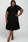 A solid ribbed short sleeve plus dress with scoop neckline and tiered body.
