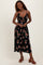 Black Rose Print Twist Front Cutout Midi Dress