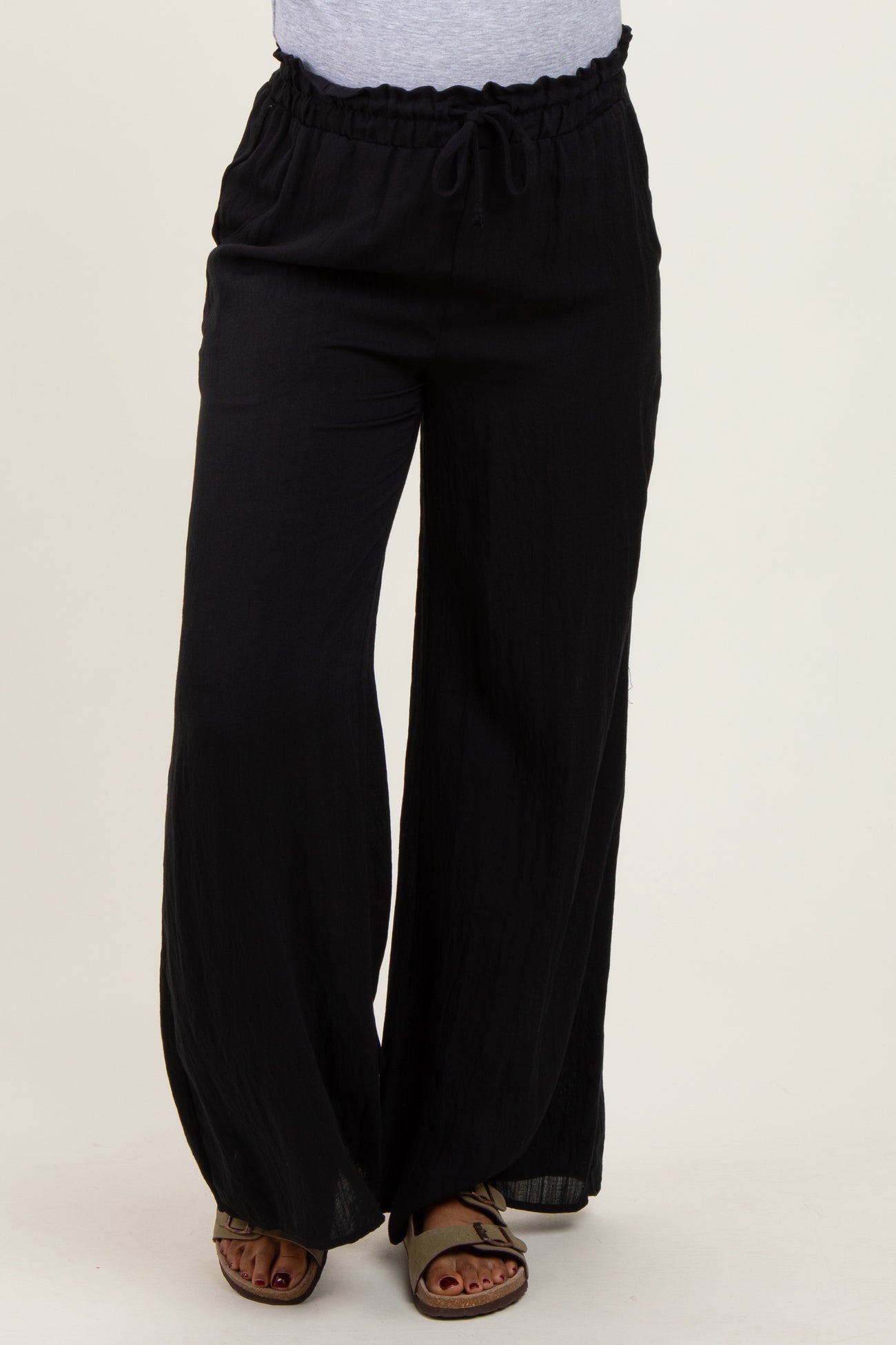 Black Ruffled Drawstring Waist Wide Leg Maternity Pants