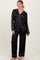 Black Satin Contrast Trim Long Sleeve Pajama Set