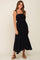 Black Shirred Shoulder Tie Midi Dress