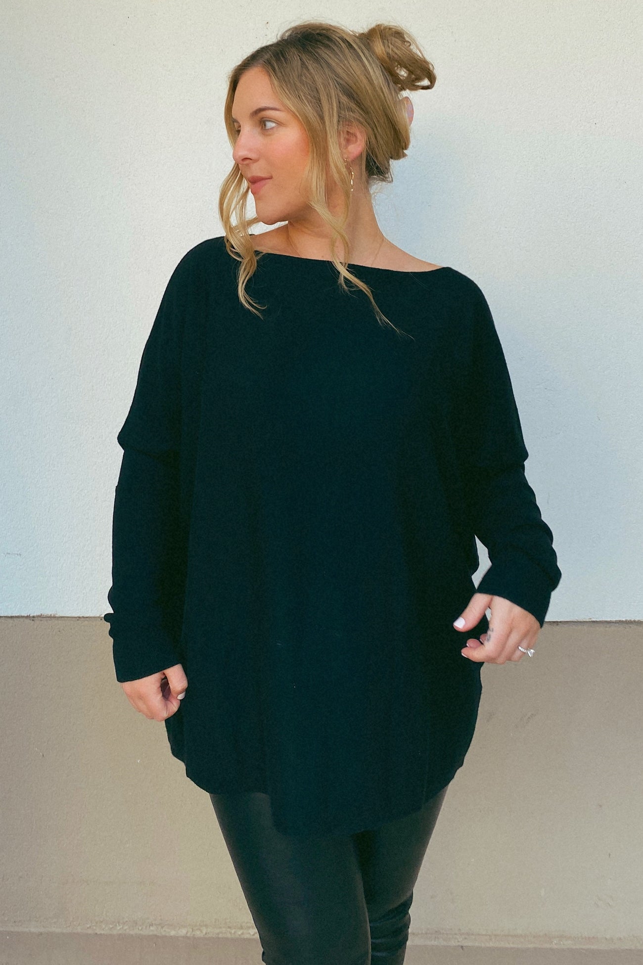 Black Soft Knit Boatneck Dolman Sleeve Sweater