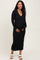 Black Solid Brushed Rib Long Sleeve V-Neck Fitted Maternity Midi Dress