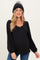 Black Solid Ribbed Long Sleeve V-Neck Maternity Tunic Top