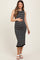 Black Striped Knit Sleeveless Ruffle Hem Maternity Midi Dress