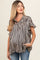 Black Striped Ruffle Sleeve Button Down Maternity Blouse