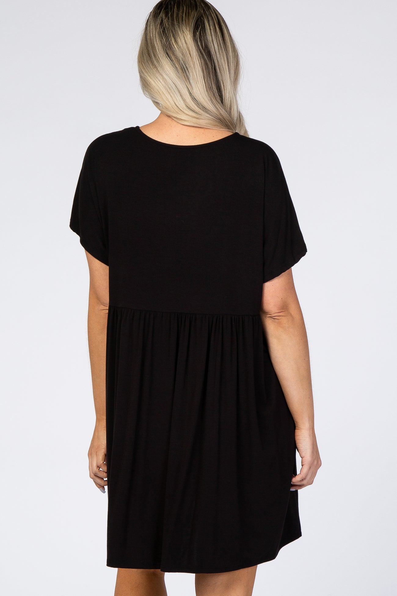 Details A solid short maternity dress with a deep v-neckline in a dolman style. Content + Care