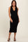 A solid thick knit maternity fitted midi dress with a deep v-neckline.