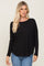 Black Waffle Knit Curved Hem Long Sleeve Top