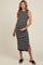 Black White Striped Knit Sleeveless Side Slit Maternity Midi Dress