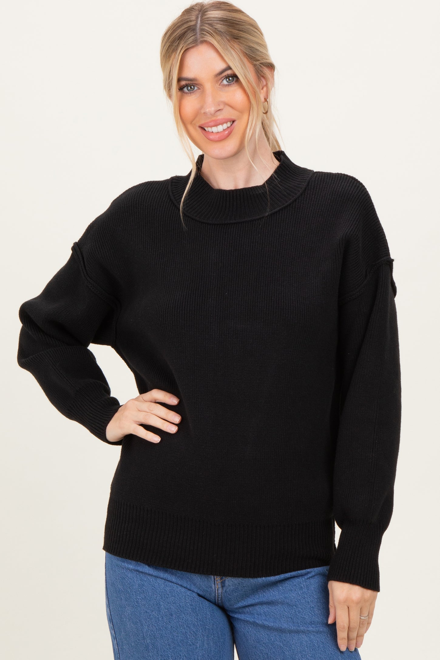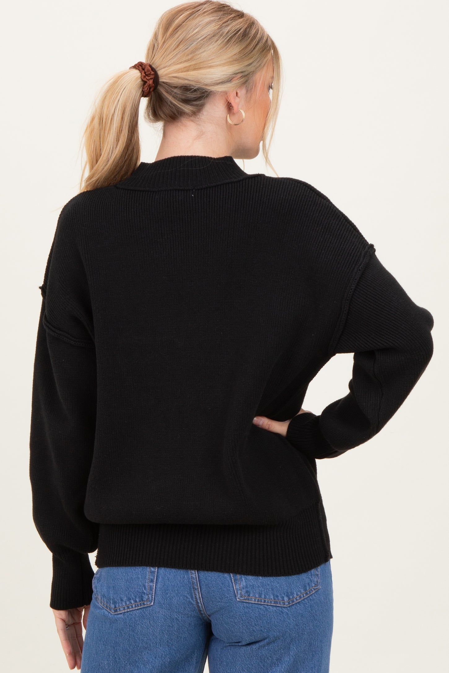 Black Wide Neck Drop Shoulder Sweater