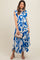 Blue Abstract Print Collared Belted Maternity Dress