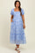 Blue Abstract Puff Sleeve Ruffle Detail Maternity Midi Dress