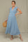 Blue Button-Down Polka Dot Shirred Bow Maternity Midi Dress