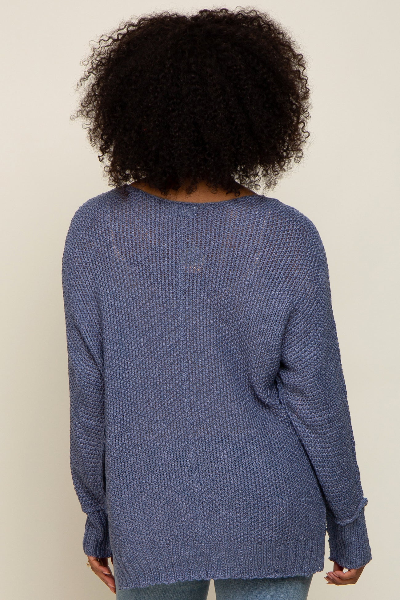 A chunky soft knit sweater featuring a v-neckline, long dolman sleeves, ribbed trim and side slits.