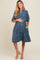 Blue Denim Button Front Short Puff Sleeve Maternity Dress