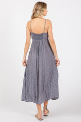 Details A floral midi dress with a smocked back, straps that are adjustable by pulling in the front tie, and a side slit. Content + Care