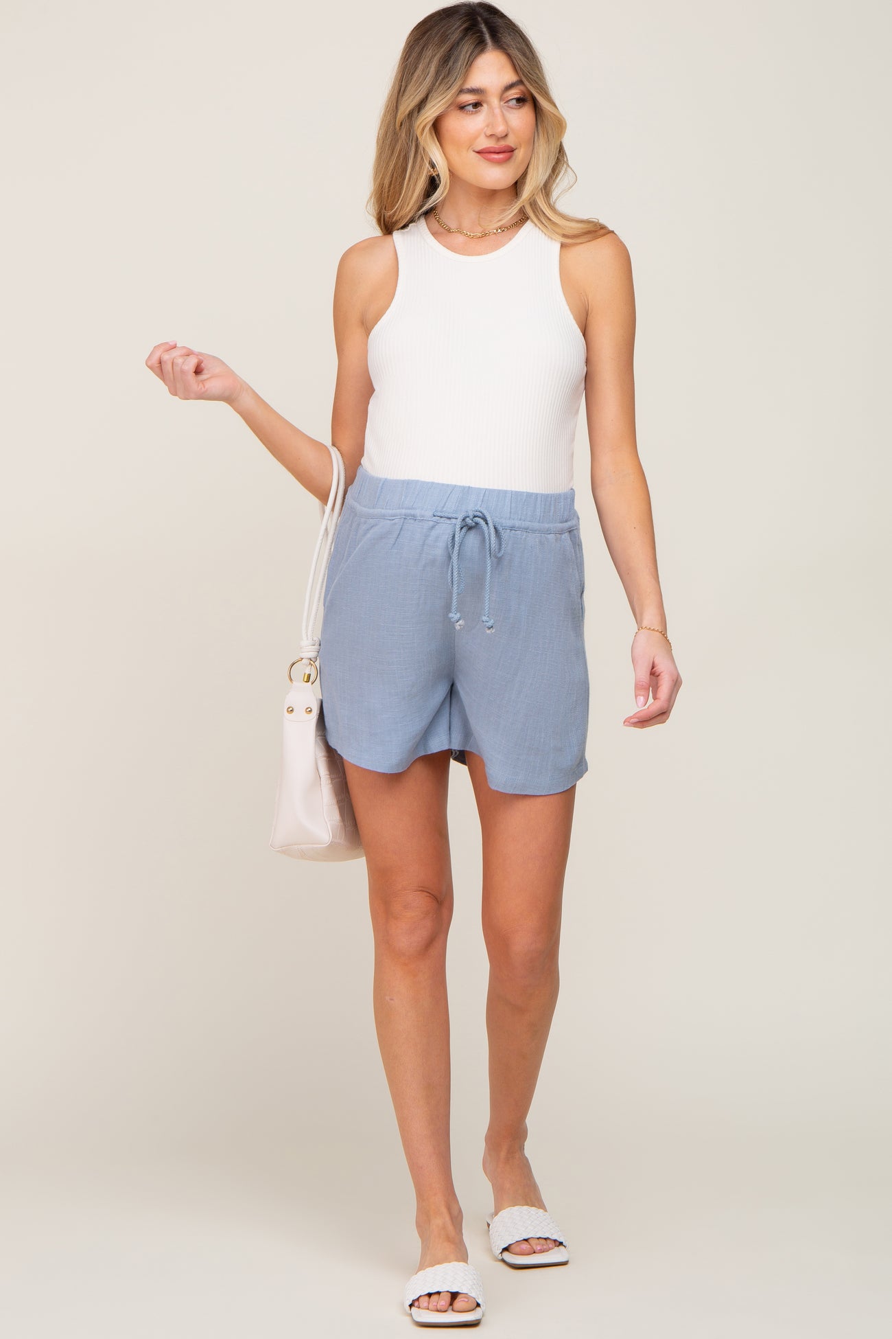Blue Drawstring Pocketed Maternity Shorts