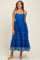 Blue Embroidered Shoulder Tie Midi Dress