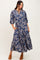 Blue Floral 3/4 Sleeve Smocked Waist Midi Dress