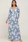 A floral print maternity maxi dress featuring a button front decor, cinched elastic waistline, and v-neckline. Also features side pockets and long sleeves.