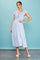 Blue Floral Front Ruched Ruffle Shoulder Tiered Midi Dress