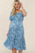 Blue Floral Scoop Neck Bubble Sleeve Maternity Midi Dress