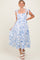 Blue Floral Shoulder Tie Tiered Midi Dress