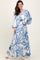 Blue Floral Smocked Waist Long Sleeve Maxi Dress