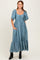 Blue Flutter Sleeve Ruffle Hem Midi Dress