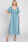 Blue Front Tie Ruffle Sleeve Midi Dress