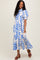 Blue Leaf Print Scallop Trim Midi Shirt Dress