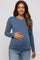 A solid maternity top featuring long sleeves and a rounded neckline.