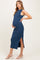 Blue Mock Neck Side Slit Maternity Midi Dress