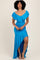 Blue Off Shoulder Ruffle Hi-Low Maxi Dress