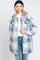 A plaid print sherpa jacket featuring a collared neckline, two front pockets, a button down front, long sleeves and inner lining.