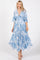 Blue Printed V-Neck Draped Maxi Dress