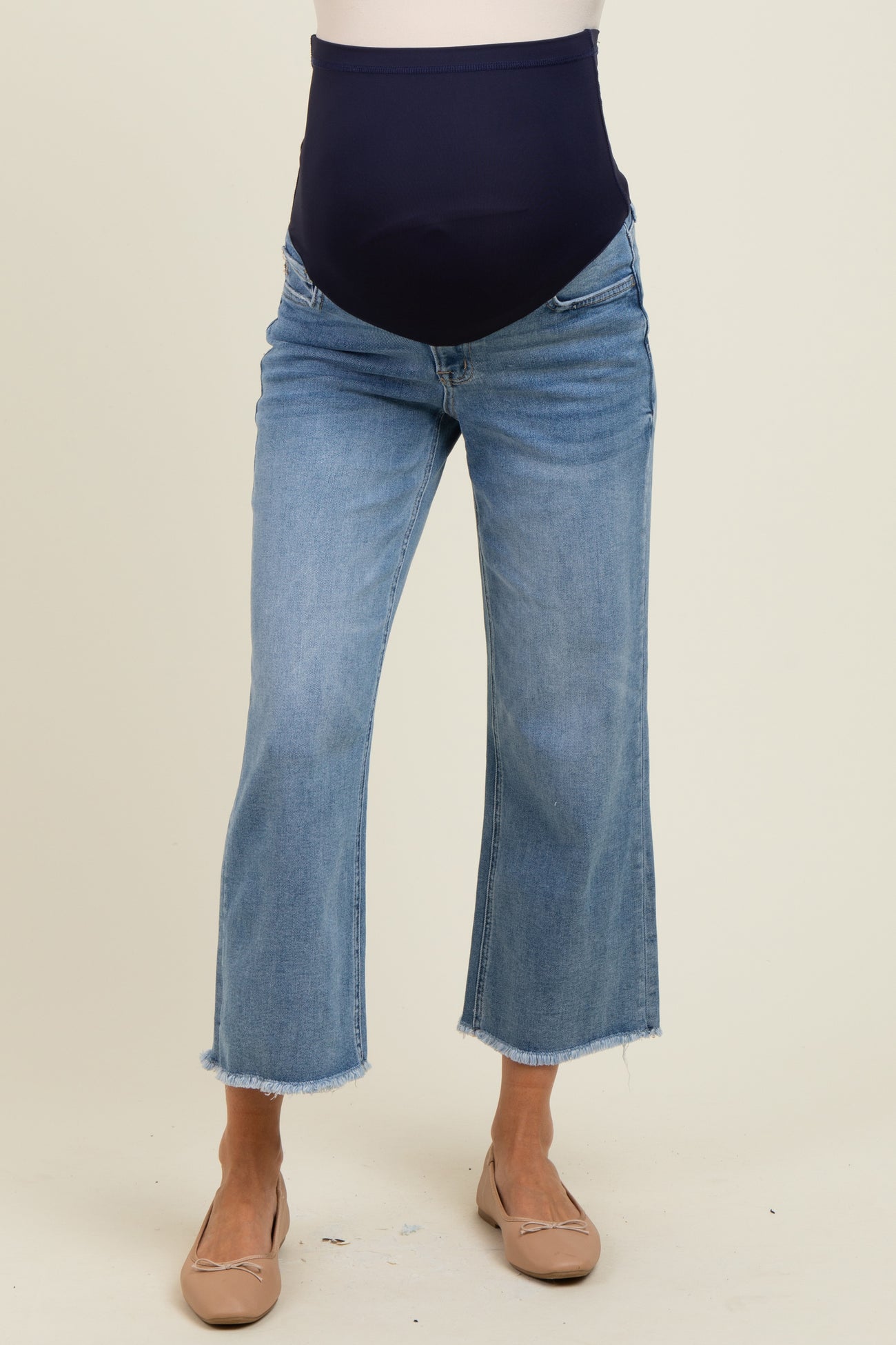 Blue Raw Hem Cropped Slim Wide Leg Maternity Jeans